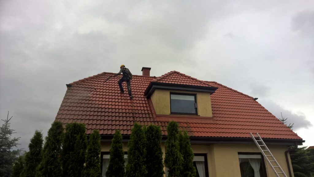 Dachówka betonowa to bardzo popularne pokrycie dachowe, jednak z czasem może stracić kolor oraz porosnąć mchem. Jeśli dachówka nie jest popękana, a dach nie przecieka to nie ma konieczności jej wymiany – można ją łatwo umyć. Usunięcie zabrudzeń z dachówki betonowej najlepiej wykonać przy użyciu myjki wysokociśnieniowej. Odpowiednio dobrane ciśnienie wody pozwala na dokładne wyczyszczenie powierzchni, nie powodując uszkodzeń dachówki. Mycie dachówki betonowej radzimy wykonywać regularnie. Z doświadczenia obserwujemy, że regularne dbanie o czystość dachówki skutkuje bardzo ładnym wyglądem zewnętrznej powierzchni dachówki nawet po kilkunastu latach użytkowania.